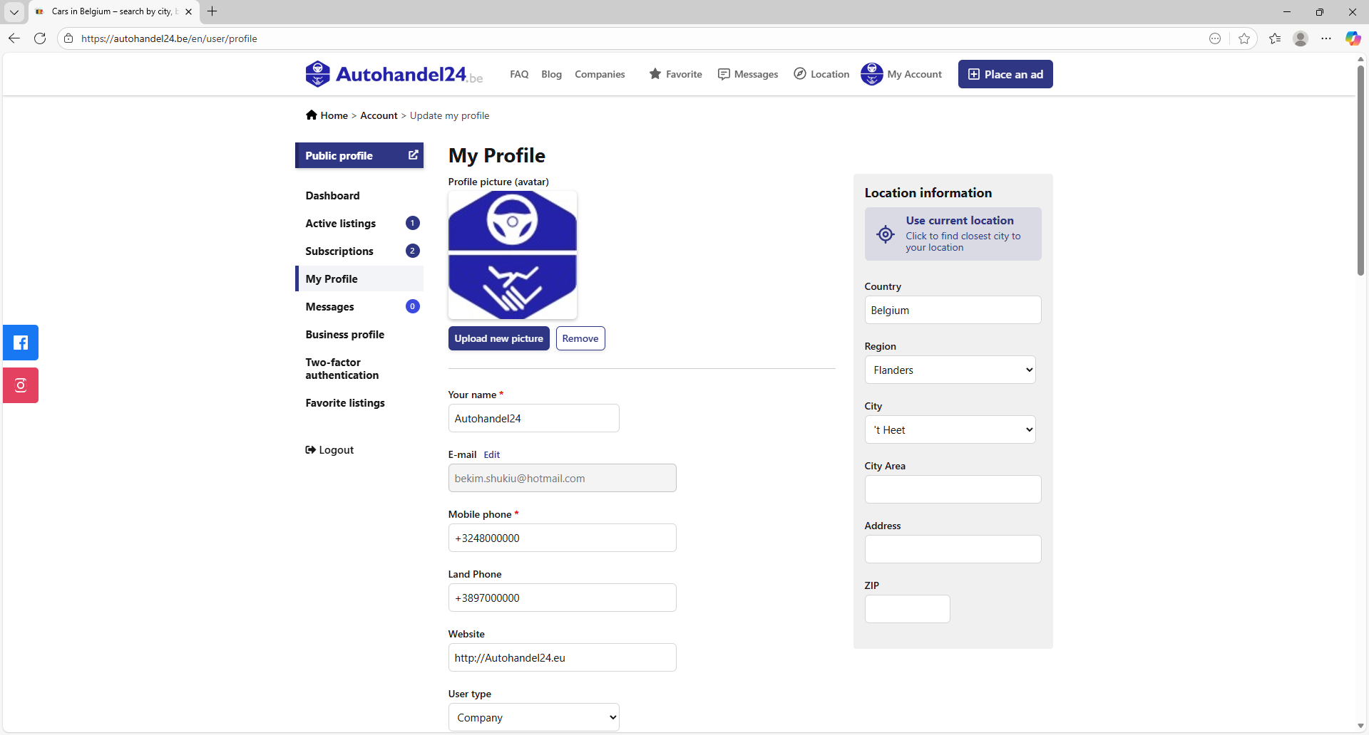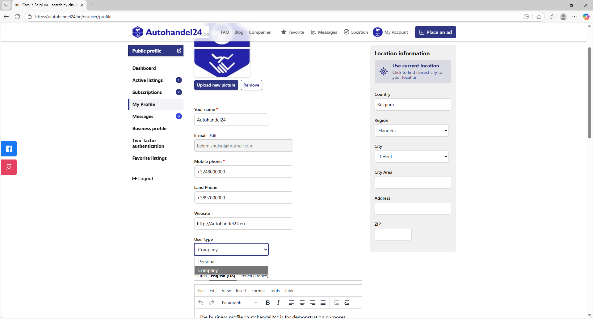 To create a Business Profile, you must first register an account on Autohandel24.be.